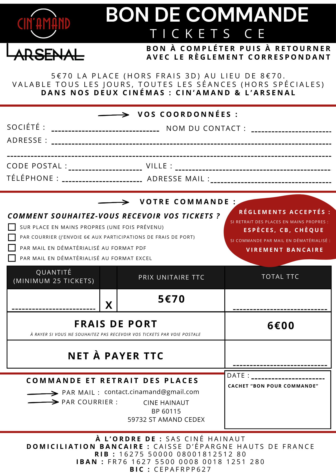 Envoyez nous votre commande par mail à contact.cinamand@gmail.com