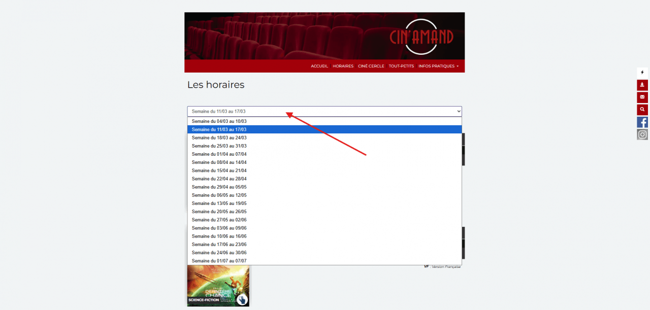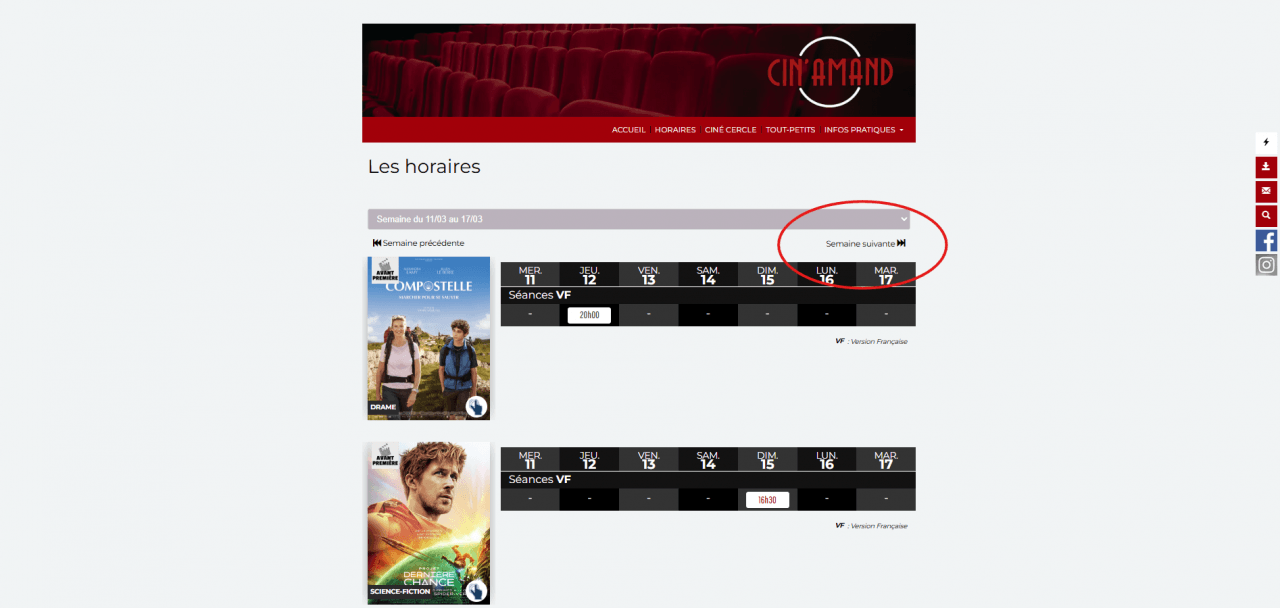 Les semaines cinématographiques étant du mercredi au mardi, la programmation est généralement validée et publiée sur notre site lundi dans la journée.